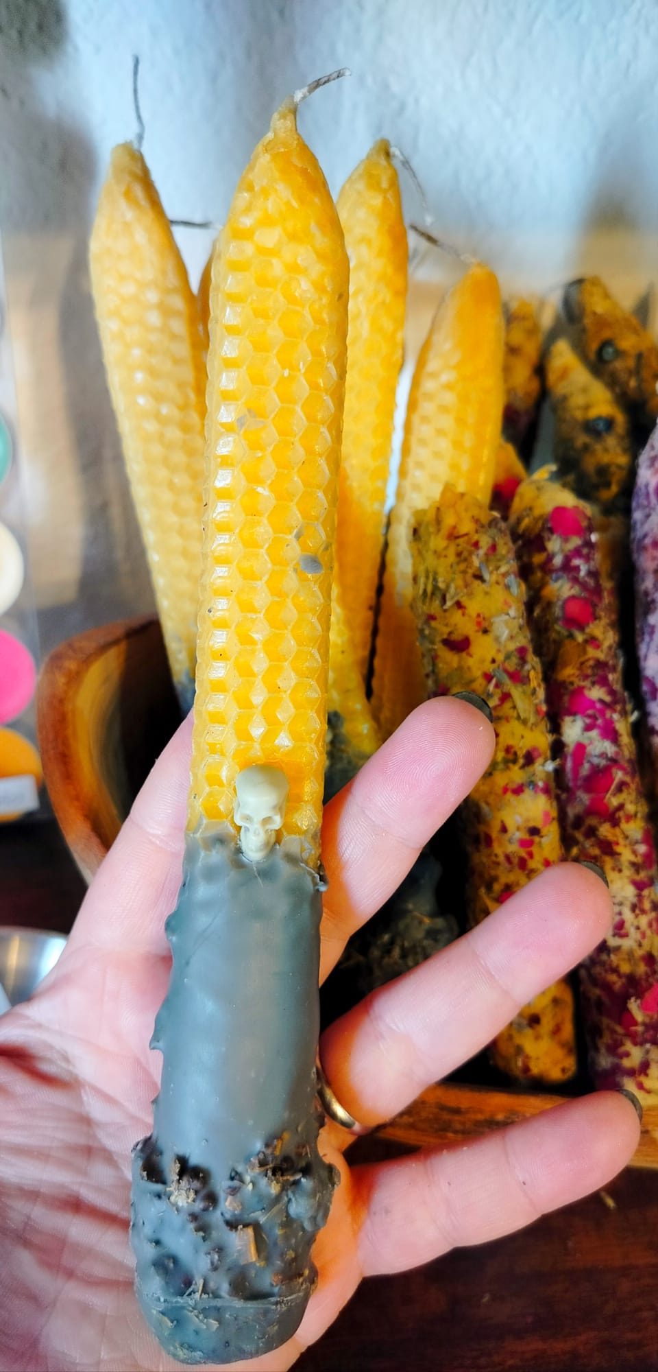 Creata artigianalmente in cera di soia e bagnata in cera d’api, al suo interno troviamo fiori d’arancio, cannella e una magica chiave da conservare al termine del consumo.