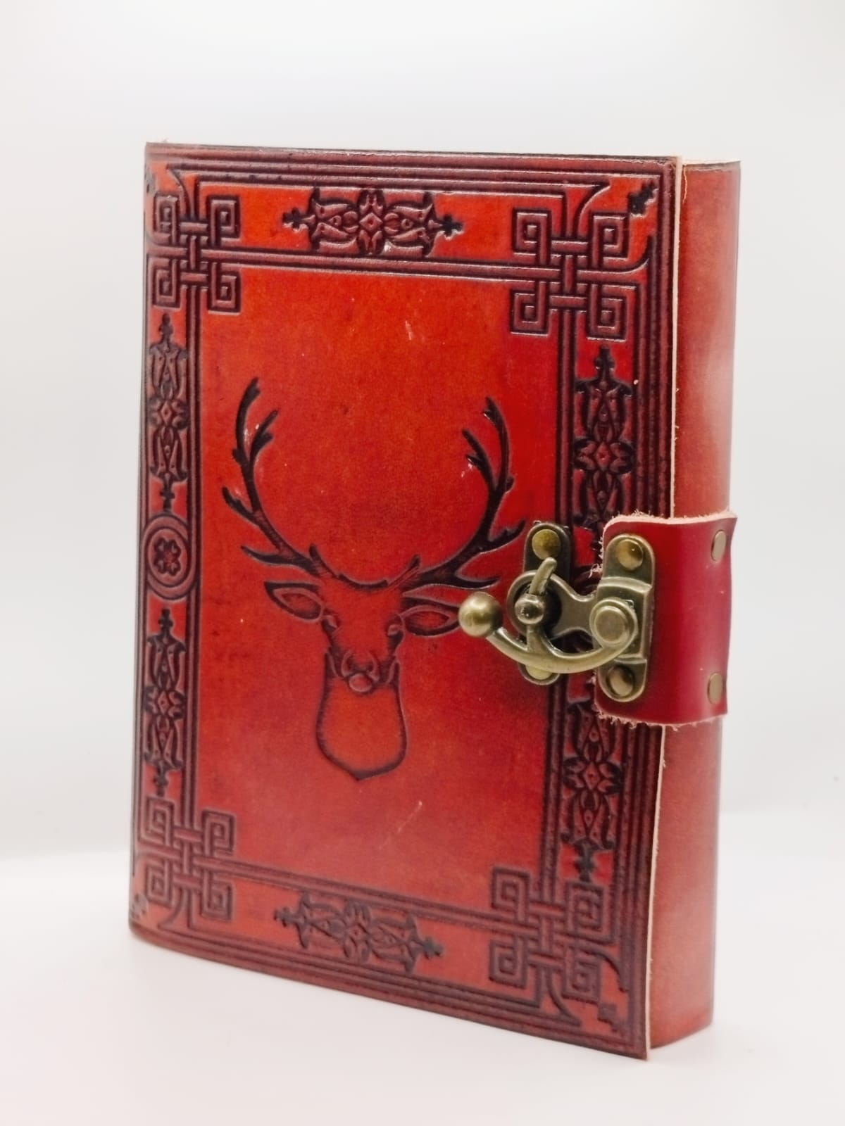 Bellissimo diario in pelle rilegato a mano con decorazioni e simbologia del cervo che rappresenta la saggezza, la forza e le energie sottili.