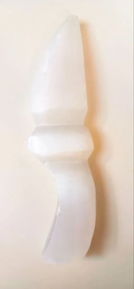 - Supporto spirituale: Canalizzazione dell’energia, direzione dell’intento, pulizia aurica. La selenite amplifica la luce e favorisce la chiarezza mentale e spirituale. Il puntale concentra e dirige queste proprietà.