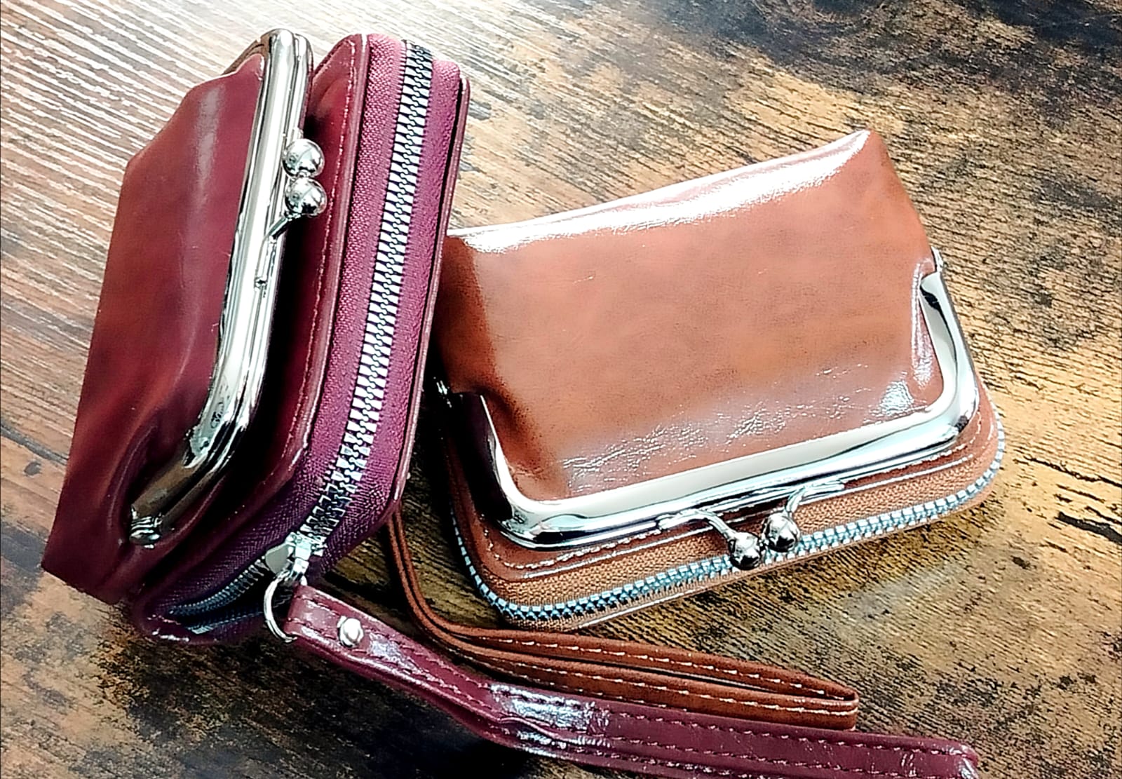 Portafoglio in similpelle rettangolare, la sua particolarità è la divisione tramite bottoni automatici, che permette di staccare il porta monete, una comodità in più.