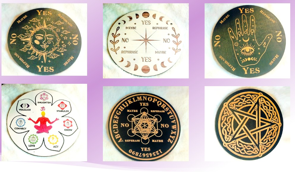 Tavole per pendolo in legno, ideali per pratiche di divinazione e lavoro energetico.